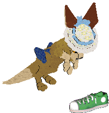 Dog is, in fact, not a dog, but a ketmet (an original species by me- you can download the hexie from my Breedfiles page). She started life as an OC, specifically the pet of a pair of aliens who were trying to pretend they were humans with a perfectly normal pet dog.